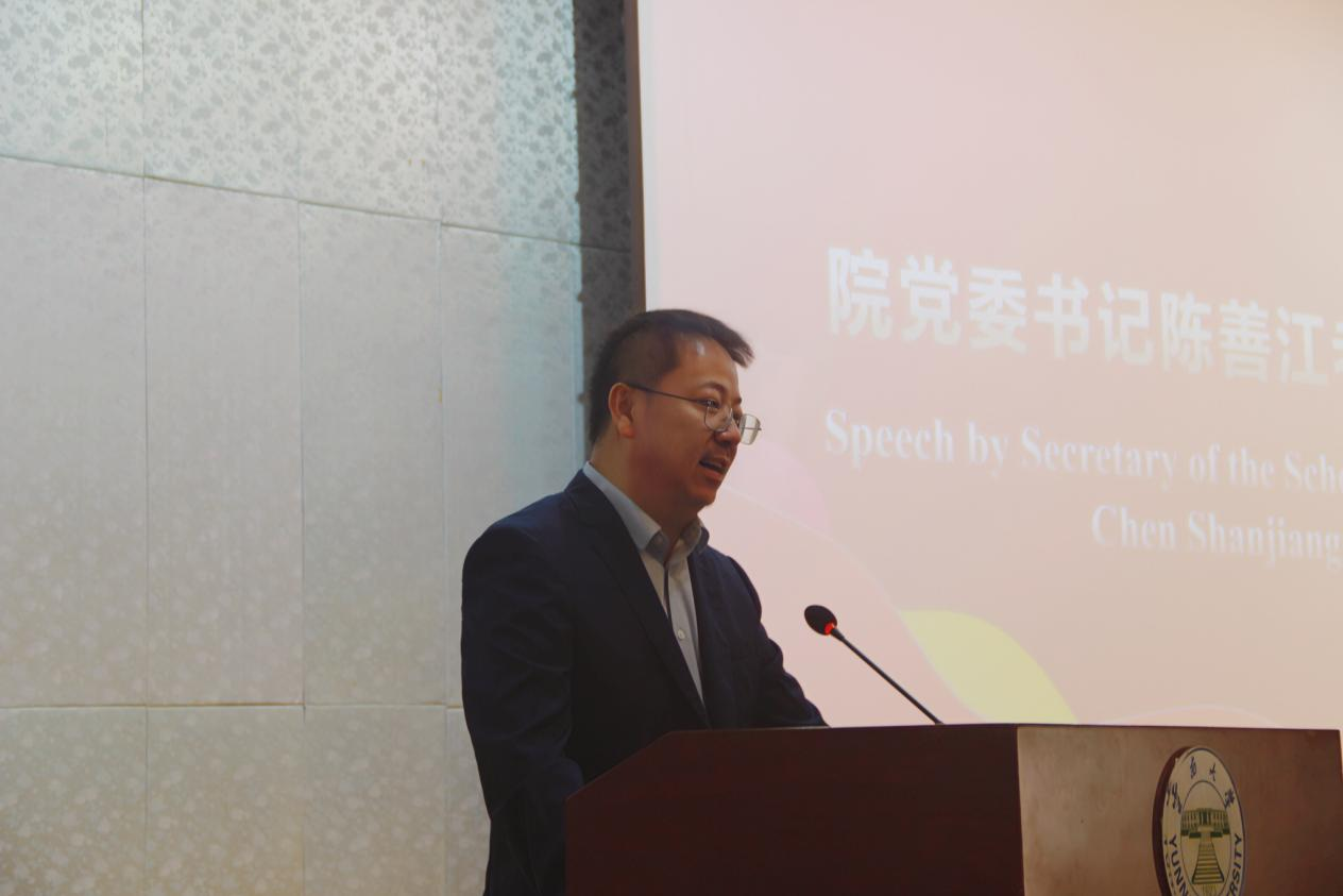 陈善江书记以“青春不留白,人生需留白”为主题寄语,从快节奏的工作和生活需要留白、人际交往也需要留白、说话做人做事更需要留白三方面鼓励同学们劳逸结合,研精致思,去探索世间更多可能性,学习更多汉语知识,领悟更多中国哲理。