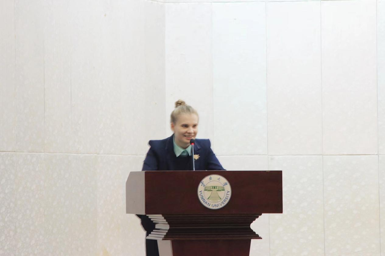 俄罗斯籍学生代表达丽娅激动地述说在云大学习的难忘时光,并向学校、学院、老师和朋友们表示衷心的祝福和感谢。她表示,对中文的探索永不结束,会继续探索中文之美、中华文化之美!