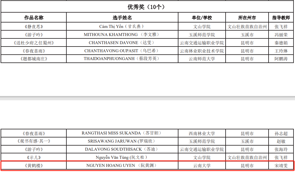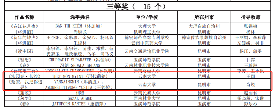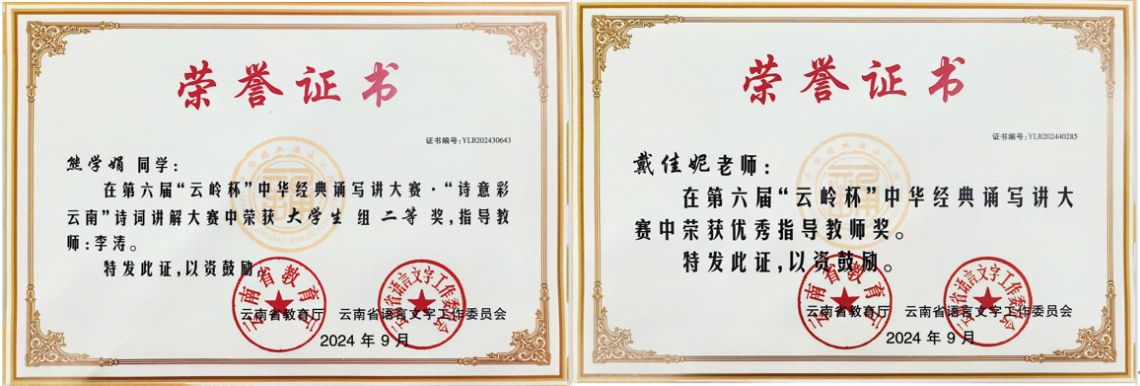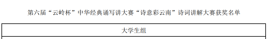 我院学生在第六届“云岭杯”中华经典诵写讲大赛获得的部分奖项