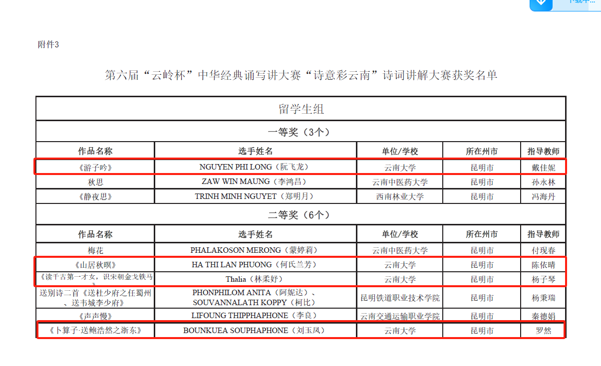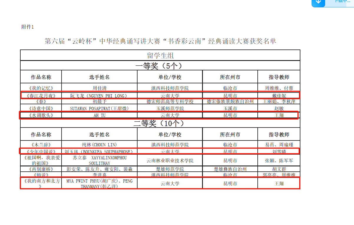 我院学生在第六届“云岭杯”中华经典诵写讲大赛获得的部分奖项