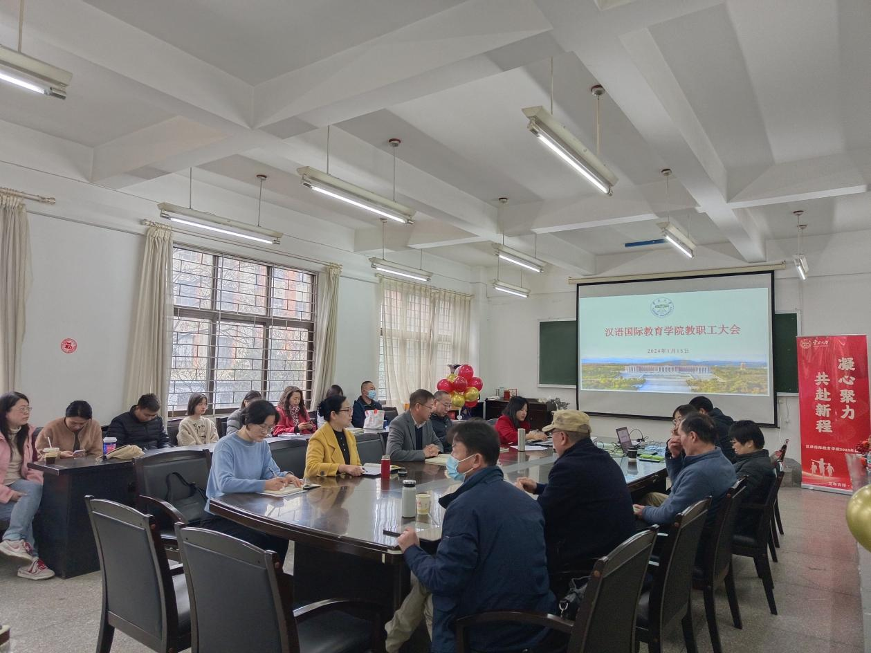 2024年1月15日下午,汉语国际环球UG网址全体教职工在南学楼213会议室召开2023年度教职工大会。学院党政领导和全院教职工参加了本次会议。