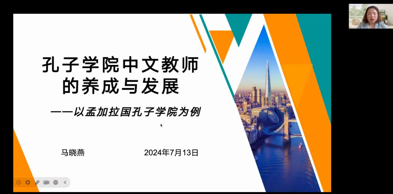 其次,孟加拉国南北大学孔子学院中方院长马晓燕基于自身丰富的外派经验,以“孔子学院中文教师的养成与发展——以孟加拉国孔子学院为例”为主题,从孔子学院职能认识、孔子学院中文教师的职业机遇、孔子学院中文教师的养成、孔子学院中文教师的发展路径及孟加拉国和孟加拉国孔子学院简介五大版块出发,分享了她在国际中文教育领域的相关见解,鼓励同学们利用相关平台提升自身能力,拓展国际职业视野。